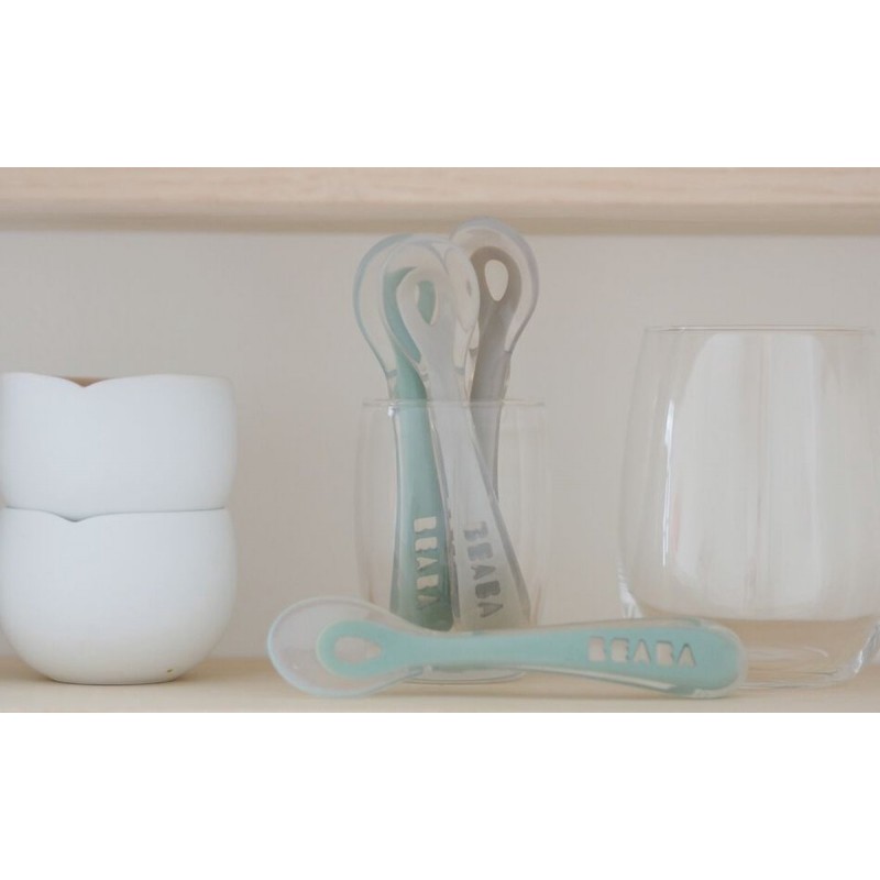 Béaba Lepel Set Siliconen Velvet Grey/Sage Green 8+ Maanden (4 Stuks)